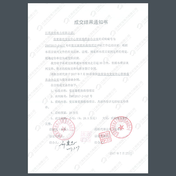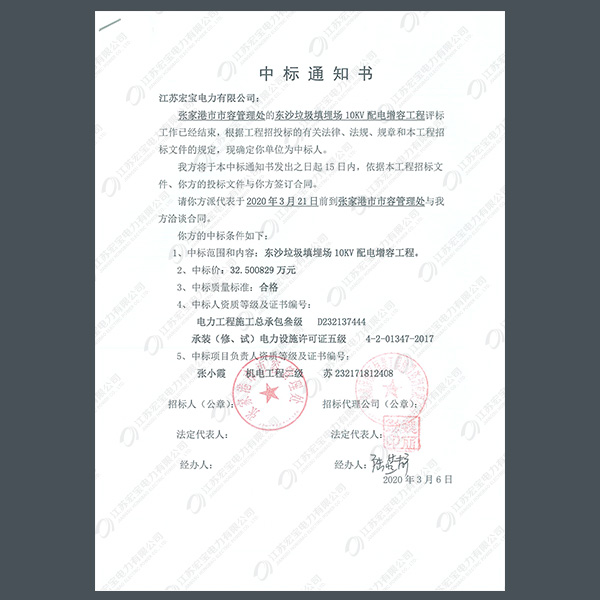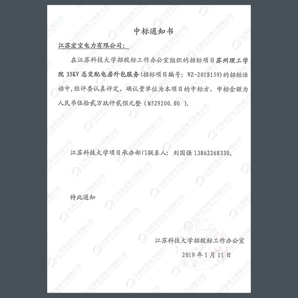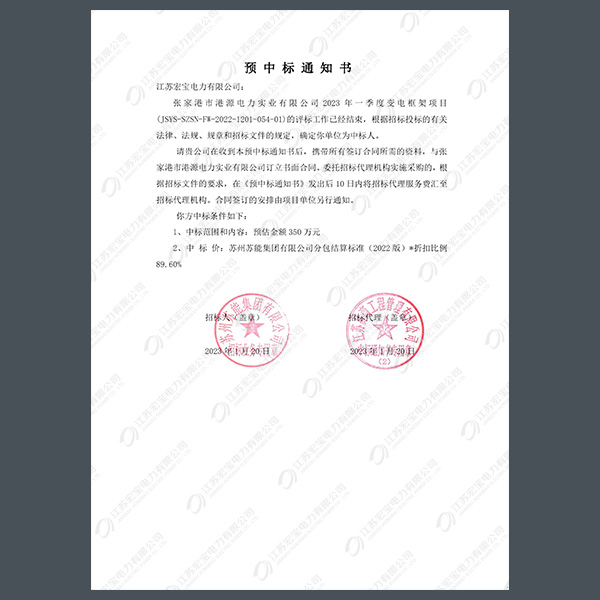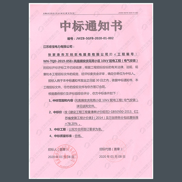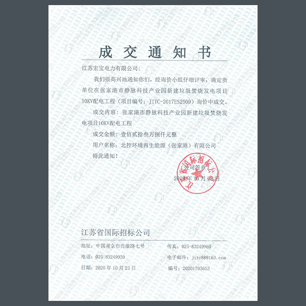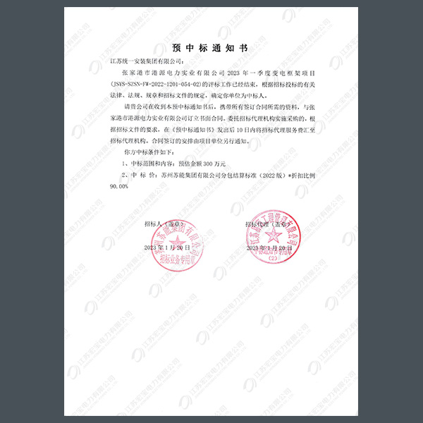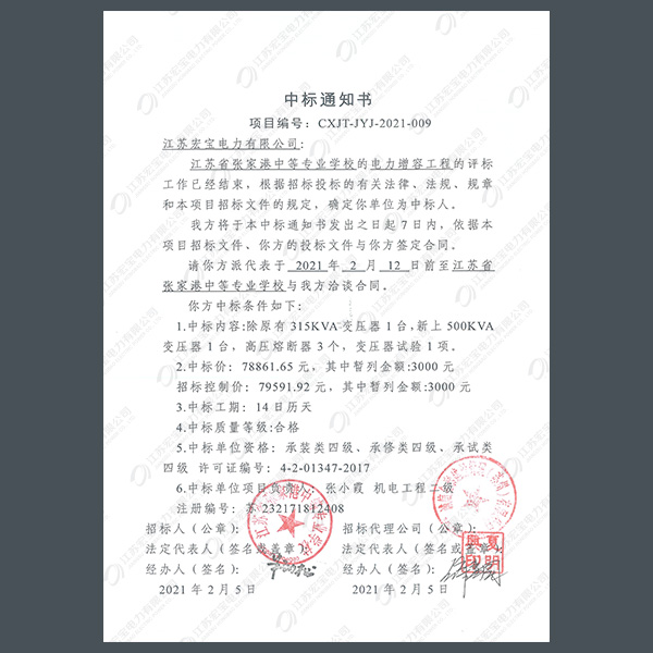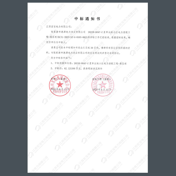 高壓柜中標(biāo)通知書