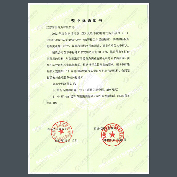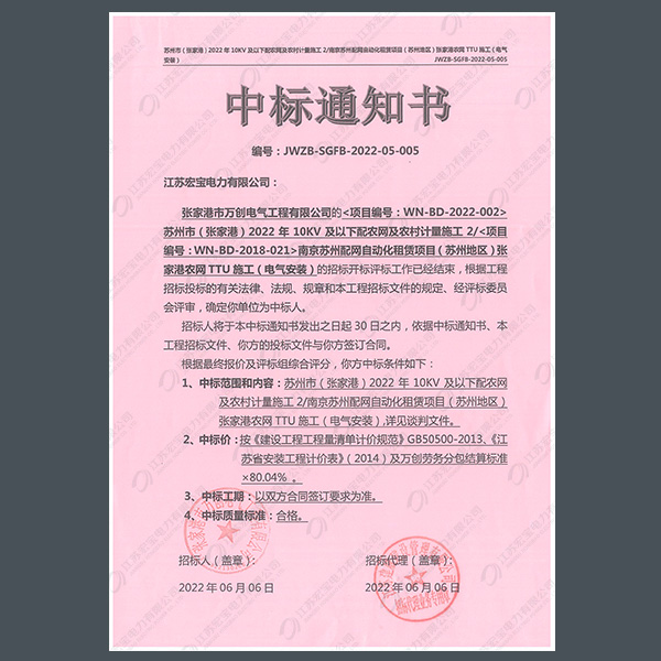 400V電纜分支箱中標(biāo)通知書