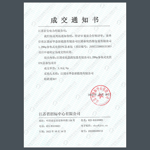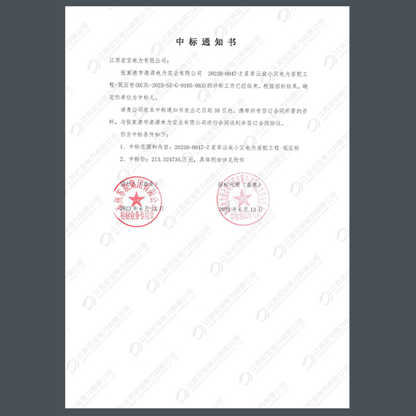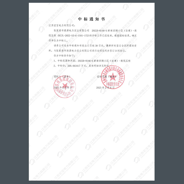 低壓柜中標(biāo)通知書